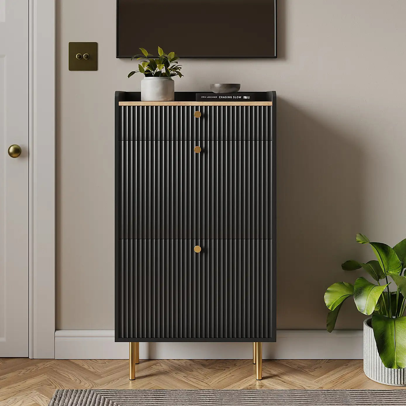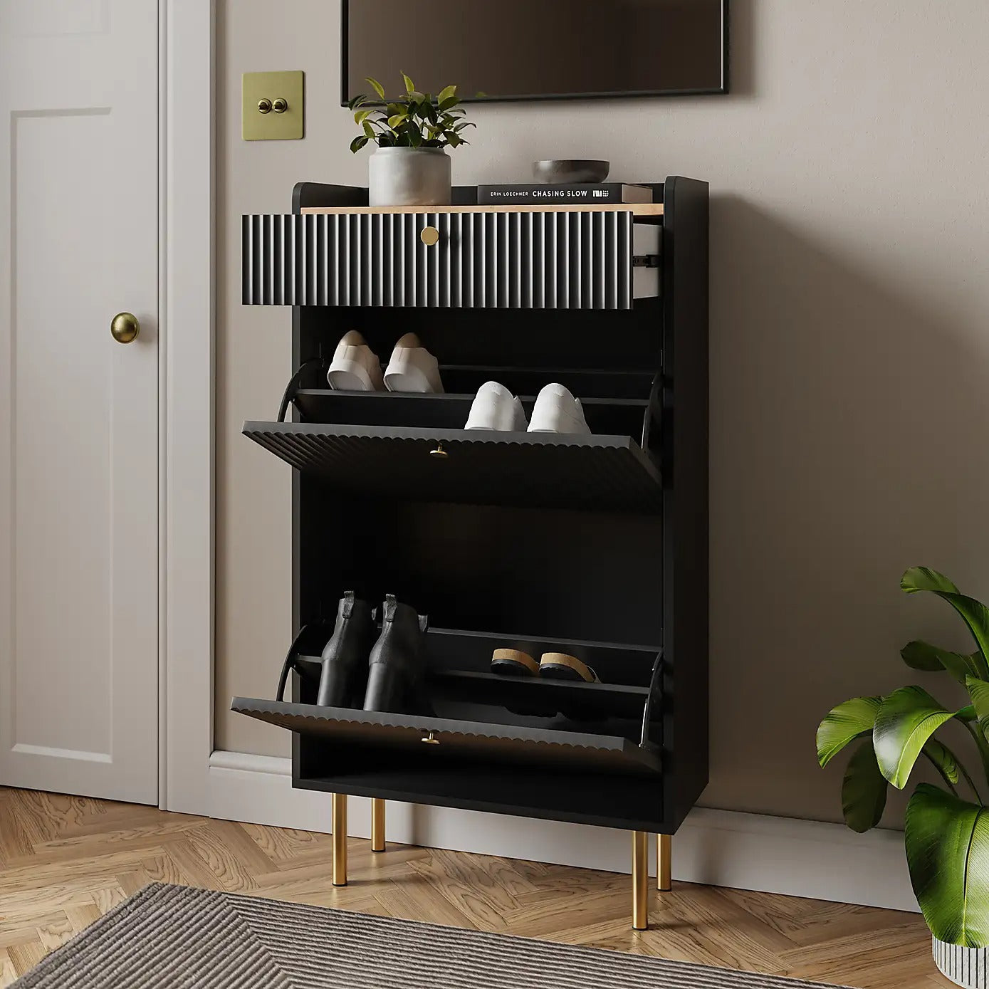 🖤 Dunelm Georgi Double Shoe Drop – Black | Solid Wood Shoe Cabinet