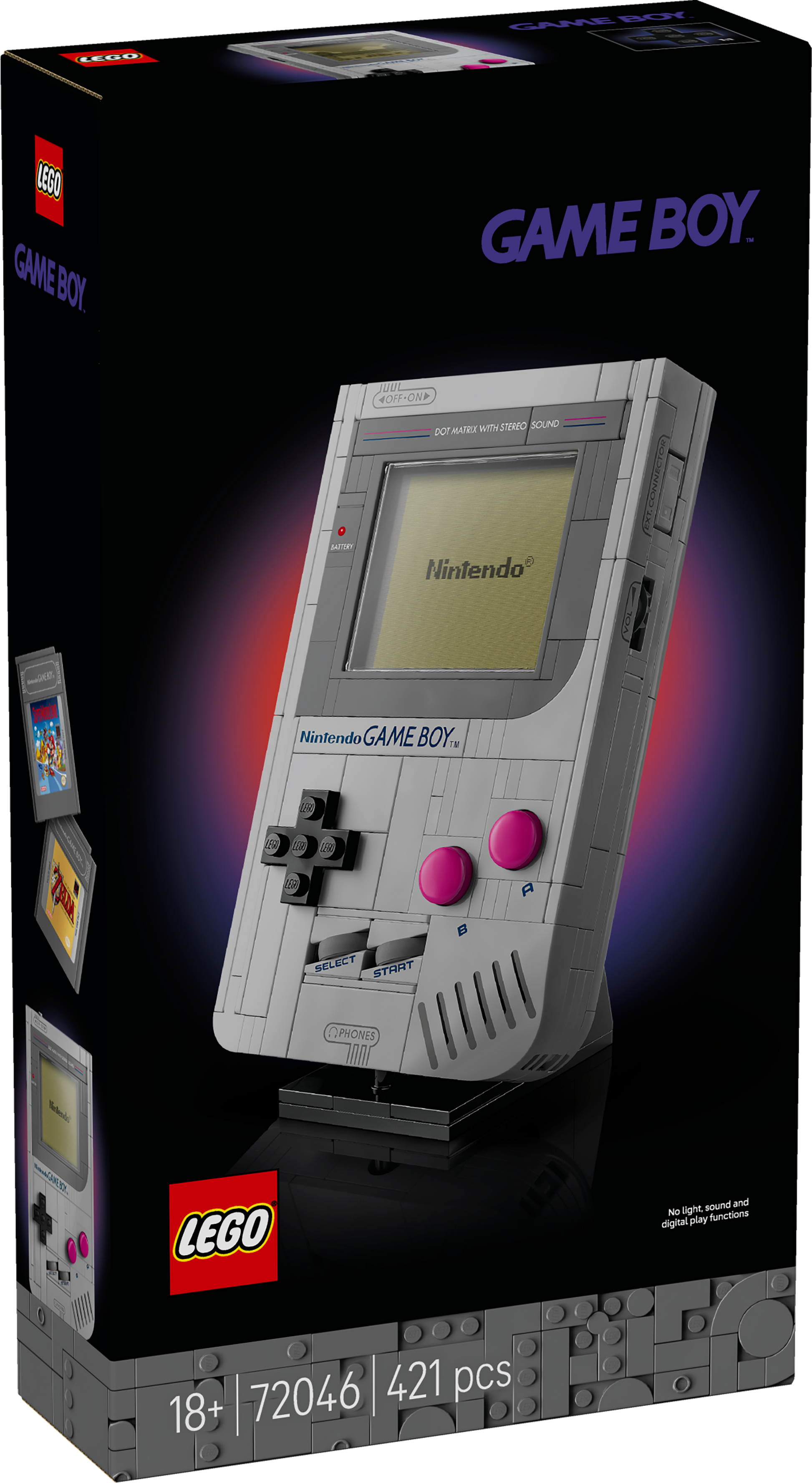 Recapture the excitement you felt when you first played on the Game Boy™ with this LEGO® model building kit for adults (72046). A fantastic gift for fans of Nintendo® video games, the collectible set features a near 1:1 scale brick-built replica of the original Game Boy handheld game system from Nintendo. Press the +Control Pad, A and B Buttons, and SELECT and START, just like on the real system. And the model has other iconic Game Boy details, including the contrast adjustment and volume dial and the Game Pak slot.