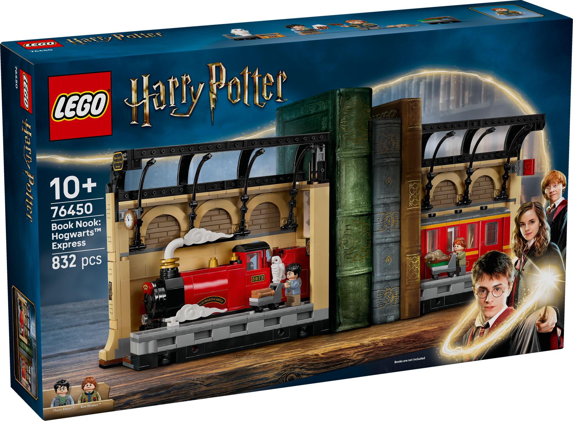 Bring wizardry to kids’ bookshelves with the first-ever LEGO® Harry Potter™ book nook (76450), featuring a buildable section of the Hogwarts™ Express – a creative way to make an enchanting book display. This magical toy lets children recreate iconic scenes at King’s Cross Platform 9¾™ with Harry Potter and Ron Weasley™ minifigures and LEGO figures of their pets Hedwig™ and Scabbers™. The train model includes a detailed locomotive and carriage with side cutouts for minifigure access, and the carriage has mirrors at one end to create the illusion of a longer train.