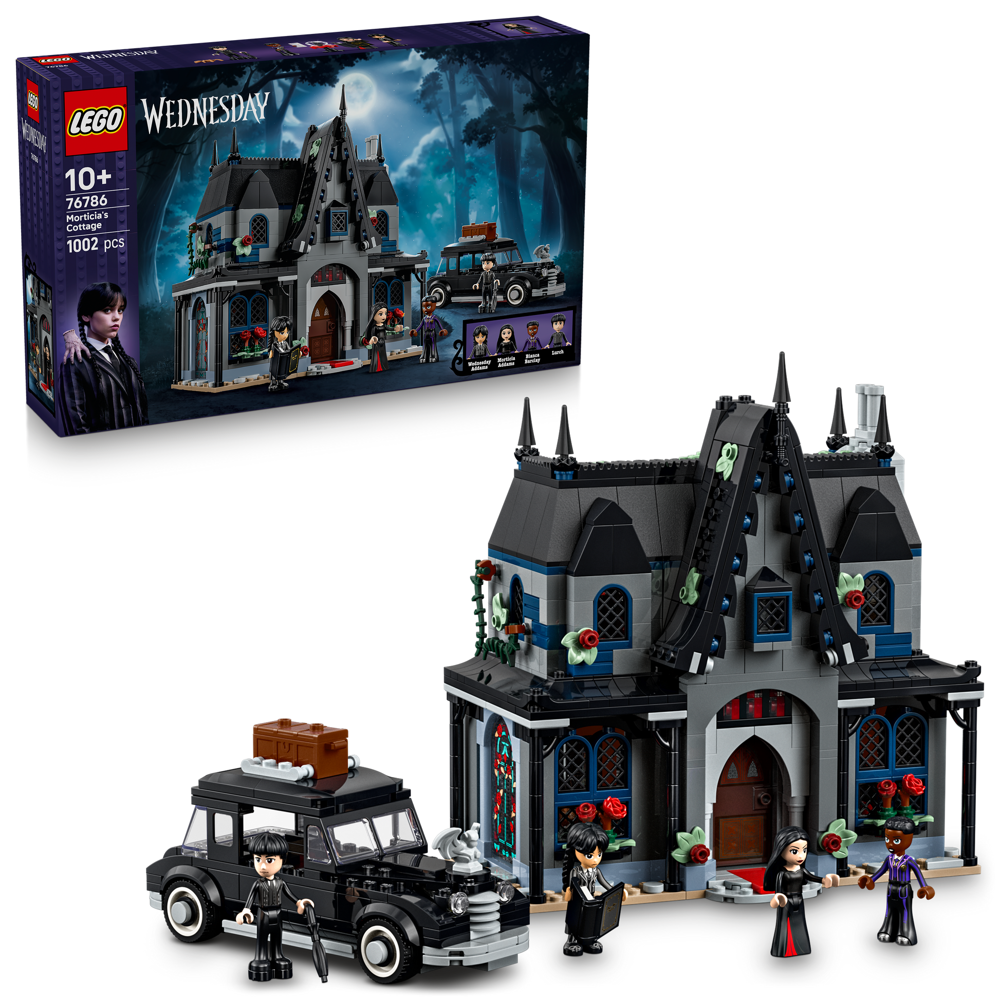 - 4 LEGO® Wednesday minidolls – This playset features Wednesday Addams, Morticia Addams, Bianca Barclay and Lurch minidoll figures, plus lots of accessories to create stories