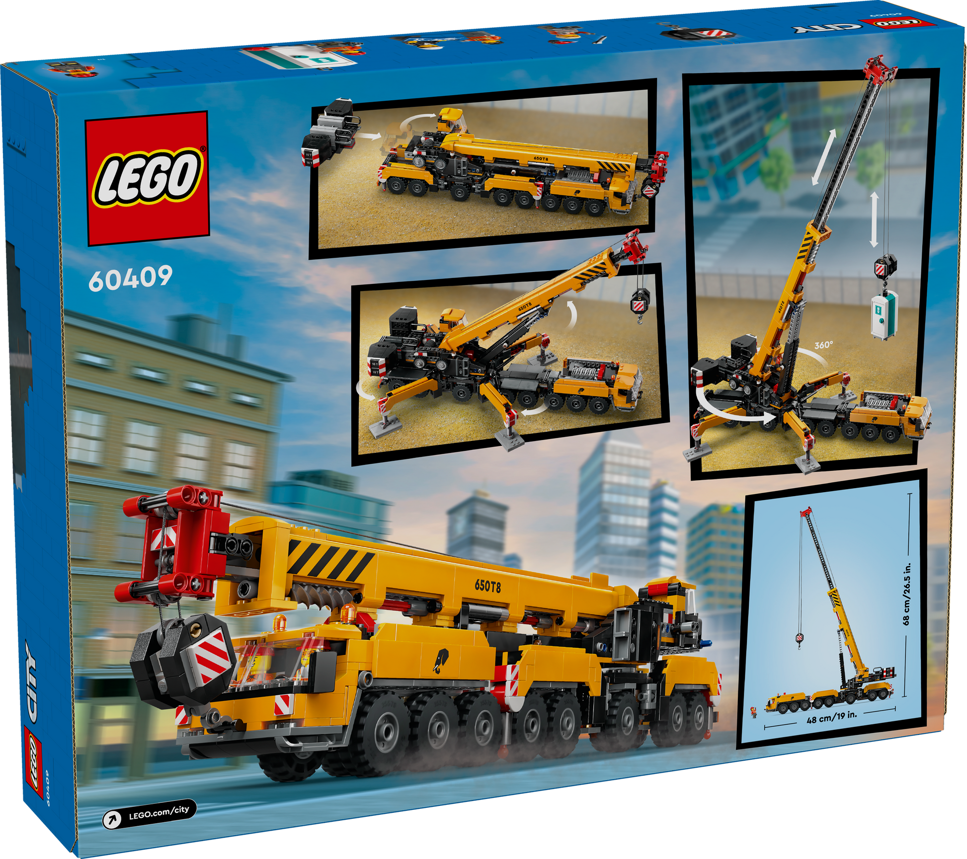 LEGO City Mobiler Baukran (60409) ist genau das richtige Konstruktionsspielzeug, um bei Kindern ab 9 Jahren die Begeisterung für coole Baumaschinen zu wecken. Dieses imposante Fahrzeug Spielzeug hat viele realistische Funktionen. Kinder können die Stützfüße des LEGO Krans ausklappen, das Führerhaus schwenken, den Ausleger ausfahren und um 360 Grad drehen und die Seilwinde bedienen. Außerdem laden 4 Bauarbeiter-Minifiguren in dem Baukran Spielzeug zu vielen fantasievollen Geschichten und Rollenspielen ein. Zu diesem LEGO Kranspielzeug ist neben einer gedruckten Schritt-für-Schritt-Anleitung auch eine 3D-Bauanleitung in der LEGO Builder App verfügbar. Intuitiv nutzbare Vergrößerungs- und Drehfunktionen lassen Kinder beim Bauen digitale Modellansichten des LEGO City Krans aus jedem Winkel betrachten. LEGO City Sets beinhalten coole Spielzeug Fahrzeuge, wirklichkeitsgetreue Bauwerke und faszinierende Figuren, die Kinder fantasievoll und ohne Limits spielen lassen. Deshalb sind diese kreativen Bauspielzeuge auch tolle Geschenke. Für viele weitere Spielmöglichkeiten kann dein Kind diesen LEGO City Kran mit anderen separat erhältlichen LEGO City Spielsets kombinieren.