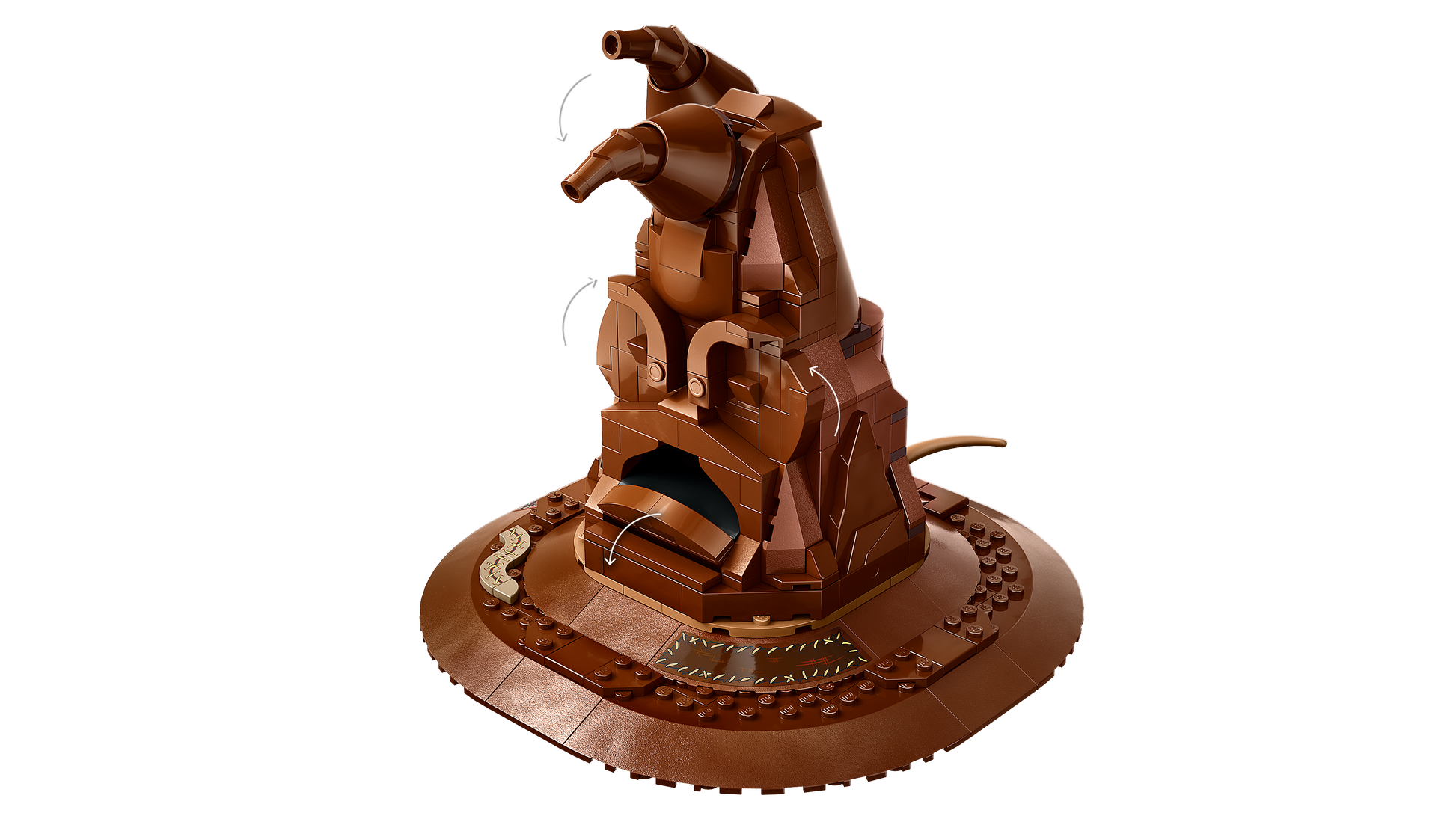 Der Sprechende Hut (76429) von Schloss Hogwarts ist das allererste LEGO Harry Potter Set mit einem Geräuschstein. Sieh zu, wie er dieses Modell zum Leben erweckt. Tippe oben auf den Hogwarts-Hut oder setz ihn dir auf, um die Stimme des Sprechenden Huts zu aktivieren. Dann erfährst du, welches Hogwarts Haus er für dich auswählt. Ab und zu ist sogar das Lied des Sprechenden Huts zu hören. Stell den Harry Potter Hut auf den Ständer, der mit den Wappen der Häuser Gryffindor, Slytherin, Hufflepuff und Ravenclaw verziert ist. Die Minifigur Harry Potter mit eigenem Sprechenden Hut auf dem Kopf macht dieses einzigartige LEGO Set zu einem ganz besonderen Ausstellungsstück. Dieses LEGO Set für Erwachsene zur spannenden Fantasy-Filmreihe ist eine magische Belohnung für dich selbst, ein tolles Geschenk für Mama und Papa, die die Zauberwelt lieben, und das beste Harry Potter Geschenk für andere erwachsene Frauen und Männer, die Fans der Harry Potter Filme sind.