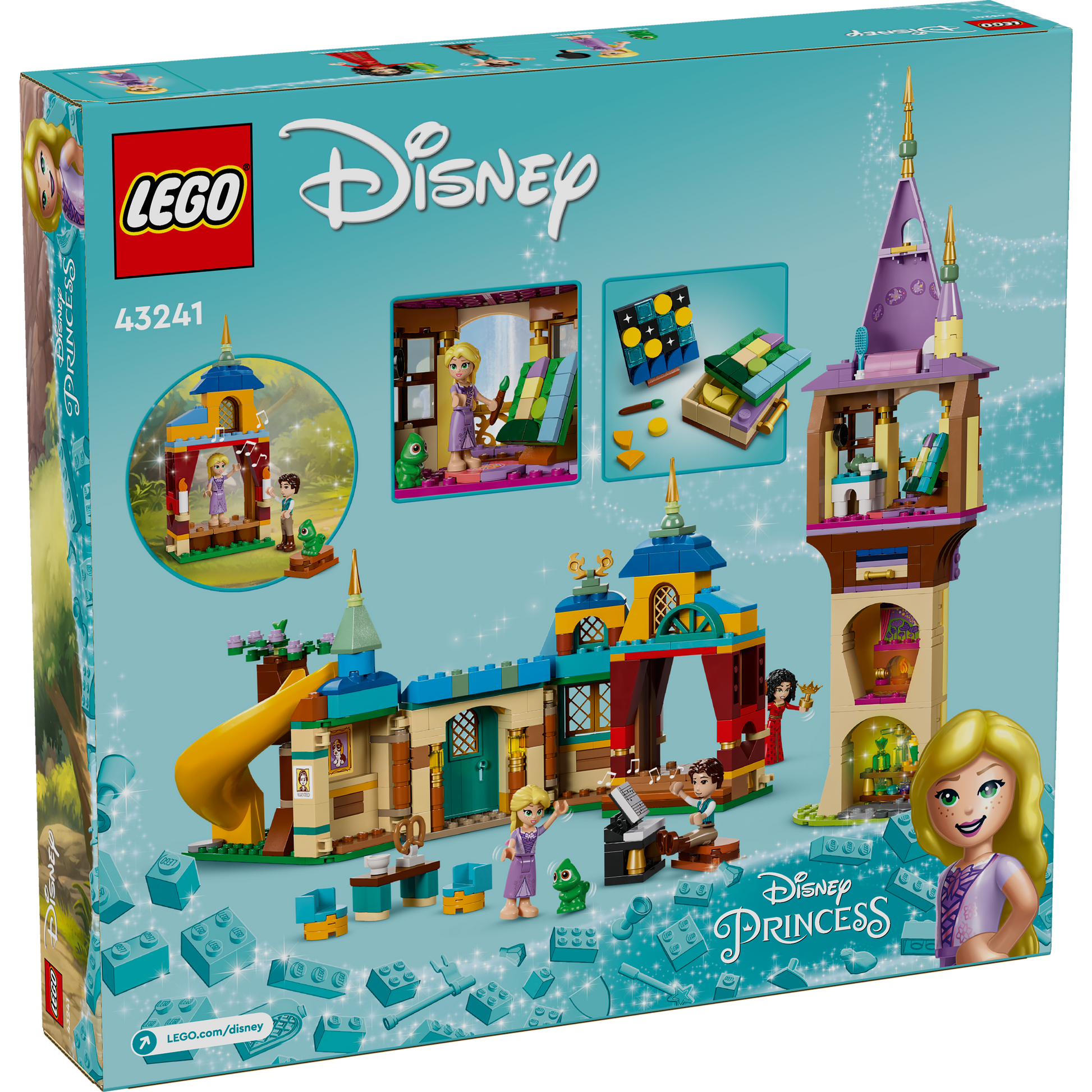New adventures await Disney Tangled fans and kids aged 6+ with this LEGO® ǀ Disney Princess Rapunzel’s Tower & The Snuggly Duckling (43241) construction toy set. Inside the box is a 4-level tower with a secret lab, kitchen/art room, bedroom, a zip line to the inn and a drawer with an extra painting and elements. The Snuggly Duckling Inn opens to reveal a movable table, chairs and a buildable piano toy. The building set includes Rapunzel, Flynn Rider and Mother Gothel LEGO ǀ Disney mini-doll figures, a Pascal LEGO ǀ Disney animal figure, Rapunzel’s frying pan and lots of other story starter elements to kick-start play.